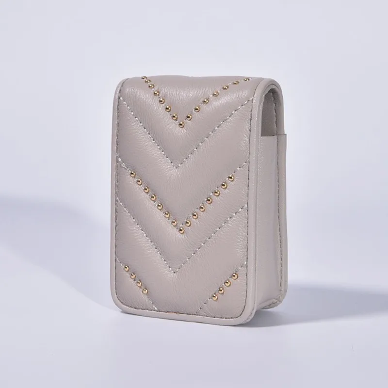 AL1081 storage black customizable vintage coin holder with custom wholesale cases mirror luxury sleeve mini empty purse leather lipstick case